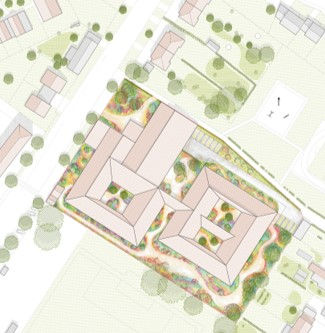 La construction de la résidence est l’occasion de proposer une conception bioclimatique et performante pour l’ensemble des locaux. Dans cette optique, l’équipe propose une réinterprétation de la maison avec des volumes aux toitures en pente, des doubles orientations et un rapport de proximité au jardin.