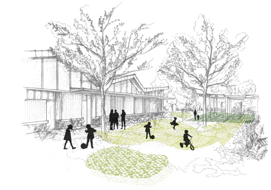 Les caractéristiques du site remarquable qui nous est proposé guident tout le projet : faire coexister le monde de l'éducation avec un biotope à venir. L'environnement pédagogique, la faune, la flore, forment ici un seul milieu vivant, l'un se nourrissant des apports de l'autre.